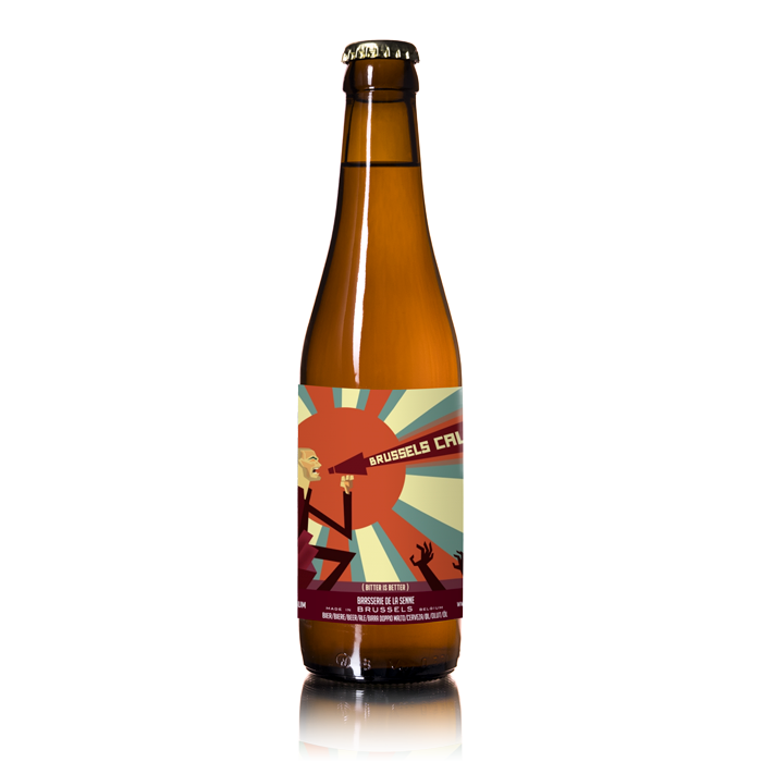 The Zinnebir label illustrates the Brussels city skyline, the buildings and the Senne river flowing through the city with a big bright sun behind it all. The label uses warm and happy colours such as yellow and green. It gives you a feeling like Brussels is a calm, orderly city, though there can be some crazy traffic and full of vibrant events. Despite the messiness, it all still functions in harmony.