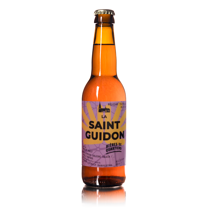 Add to my WishlistLa bière belge La Saint Guidon de la brasserie Bieres de Quartier est une Triple à 8%. Brassée en honneur du quartier anderlechtois du même nom, les habitants peuvent se délecter de cette délicieuse bière triple dans les cafés populaires du quartier.