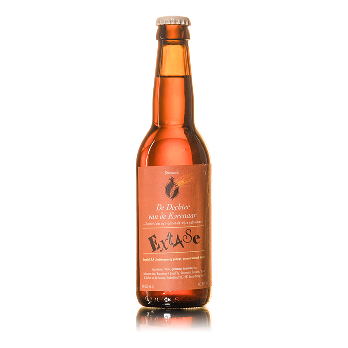 Double IPA brassée avec quatorze houblons différents Un caractère très intense mais équilibré. La légère douceur de l'alcool et les sucres du malt complètent l'amertume de la bière. L'Extase est à la hauteur de son nom grâce à son houblonnage extrême (plus de 100 IBU).