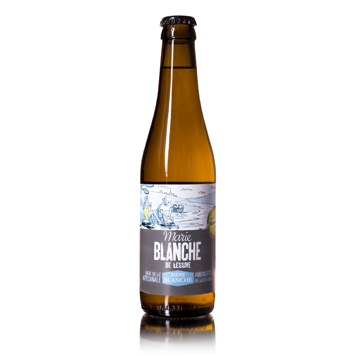 La bière belge blanche Marie Blanche de Lessive de la brasserie de la Lesse fait référence à celles qui lavaient leur linge plus blanc que blanc dans la rivière du coin, la LesseUne bière blanche légère et rafraîchissante aux notes d'agrumes. Une vraie witbier dans le style flamand le plus traditionnel.